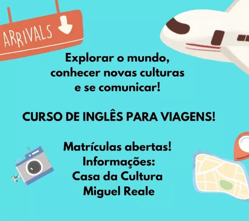 Curso de inglês com foco prático, apresentando o inglês essencial para situações reais de viagem.